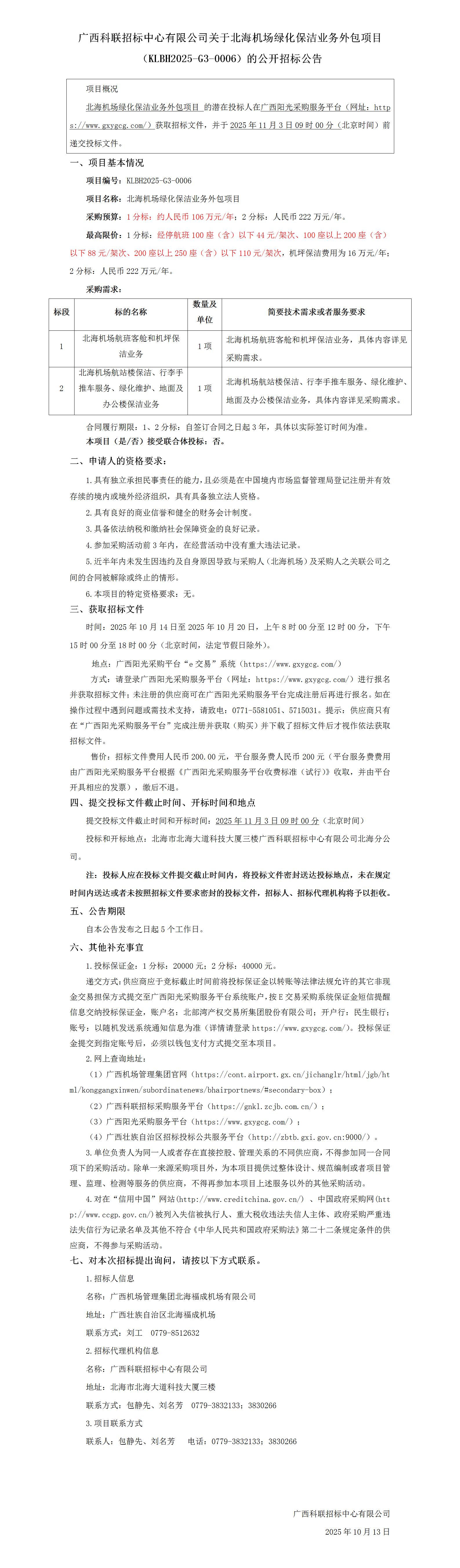 关于北海机场场区西北侧土地空隙期租赁招商项目( 重)(BHJC-HZ-202502(1))竞争性磋商公告项目概况广西机场管理集团北海福成机场有限